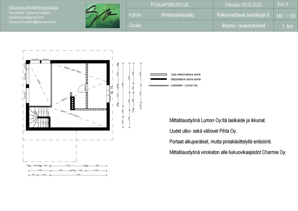 Suunnitelmassani suurennettiin ikkuna- ja oviaukot uuteen uskoon sekä kaikki pinnat uusiksi.